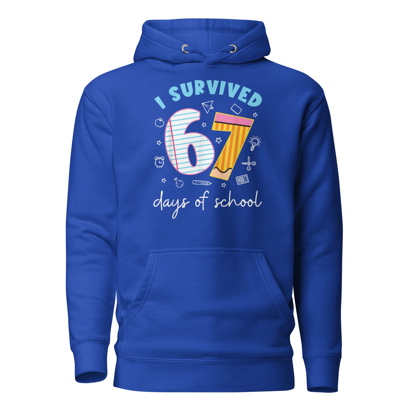 Celebrate the end of a tough school challenge with our “I Survived 67 Days of School” Premium hoodie! Perfect for students and teachers alike, this funny meme design is ideal for end-of-year parties, graduation events, or just casual wear. Laugh together in style!