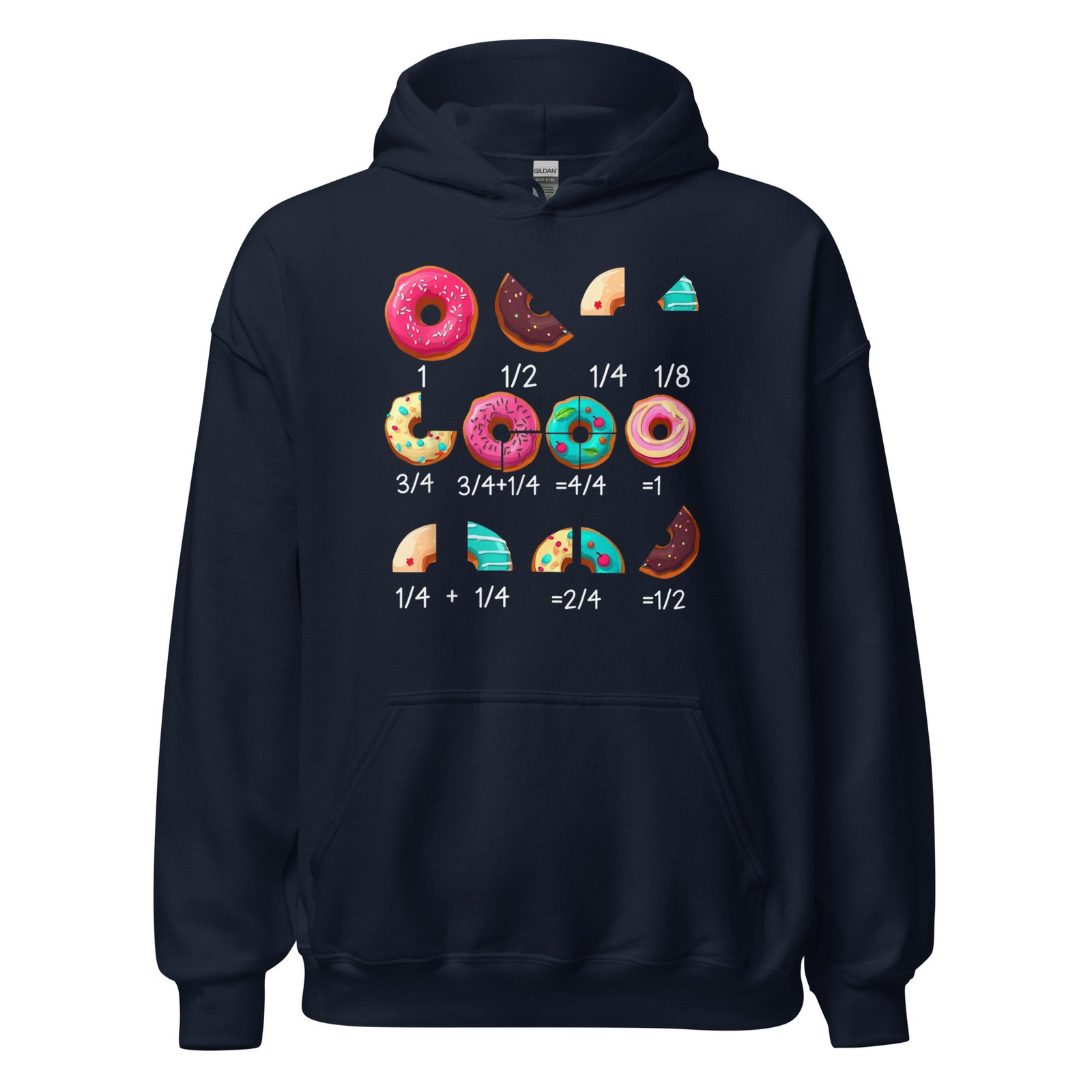 Introducing our Math Donut Fraction hoodie, perfect for teachers and students alike! Ideal for back-to-school season, this fun design makes a great gift for math lovers. Wear it during class, at school events, or whenever you want to celebrate your love for math!