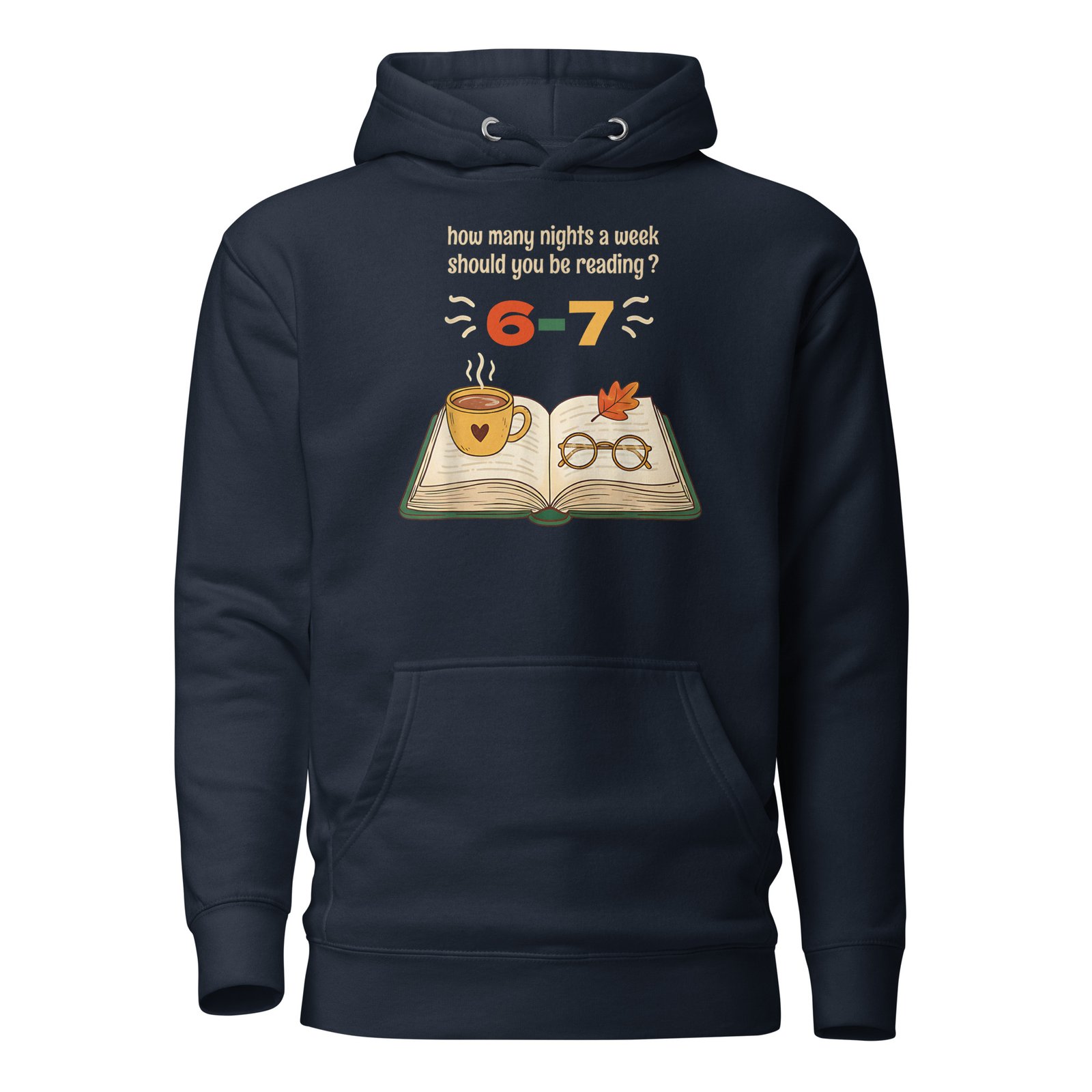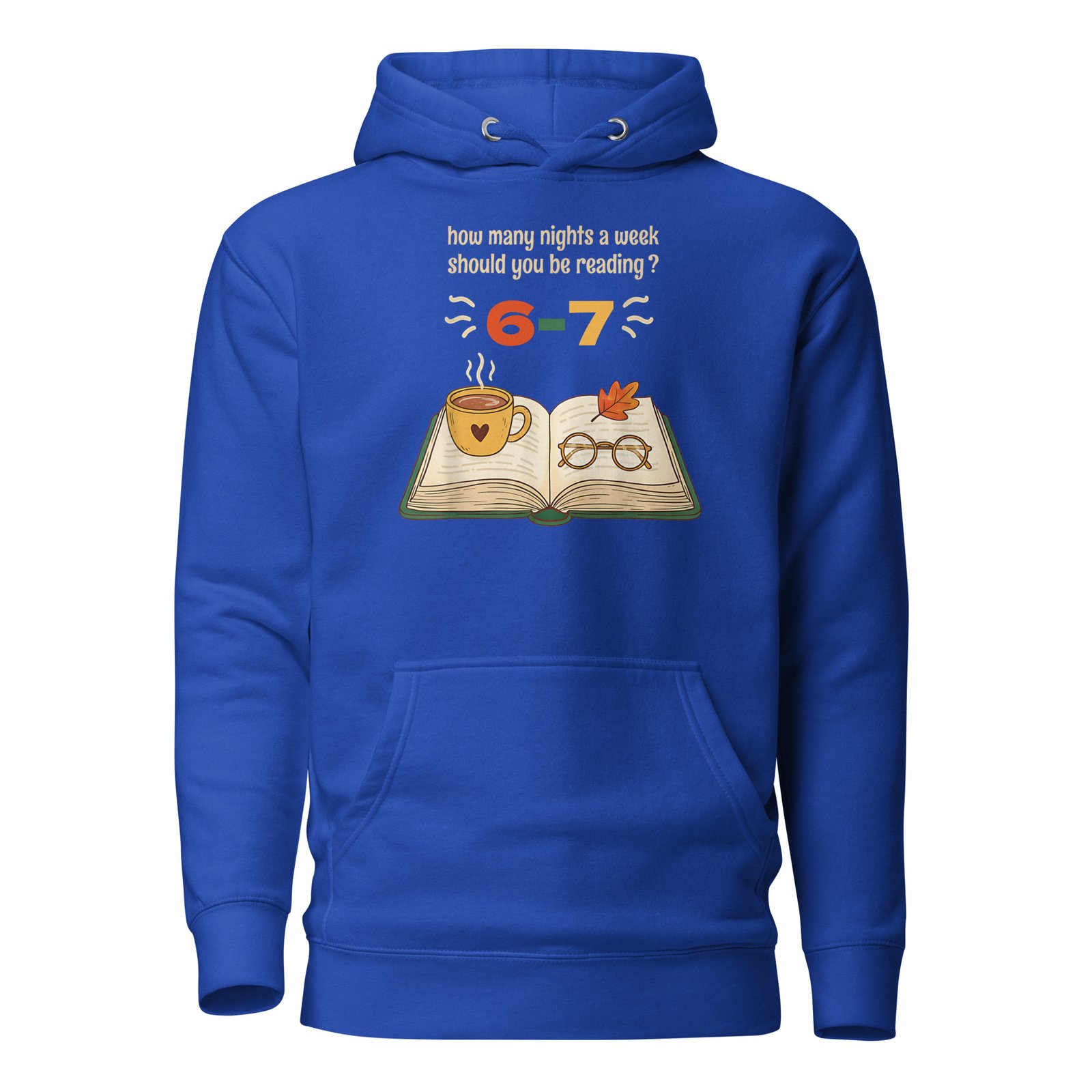 Embrace your love for reading with our funny “Read 6–7 Nights” hoodie! Perfect for book lovers, this cozy hoodie is designed for those who appreciate a good laugh while diving into their favorite novels. Whether you’re lounging at home, heading to a book club meeting, or enjoying a casual outing with friends, this hoodie is a delightful addition to your wardrobe. It’s a fantastic gift for birthdays, holidays, or just to treat yourself. Snug and stylish, it’s the ideal companion for your evenings spent lost in stories. Grab yours and celebrate your passion for books today!