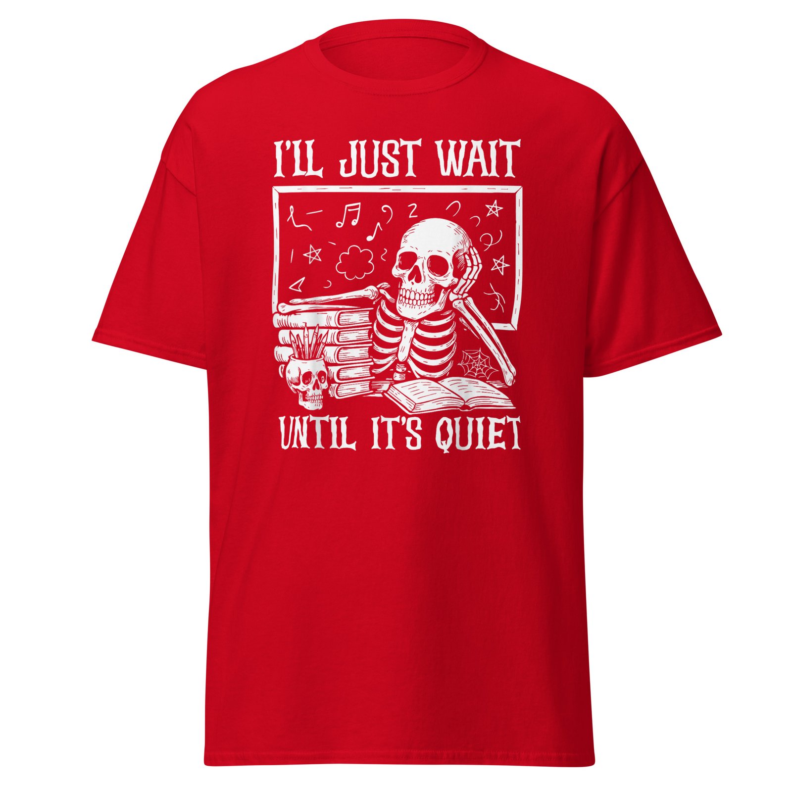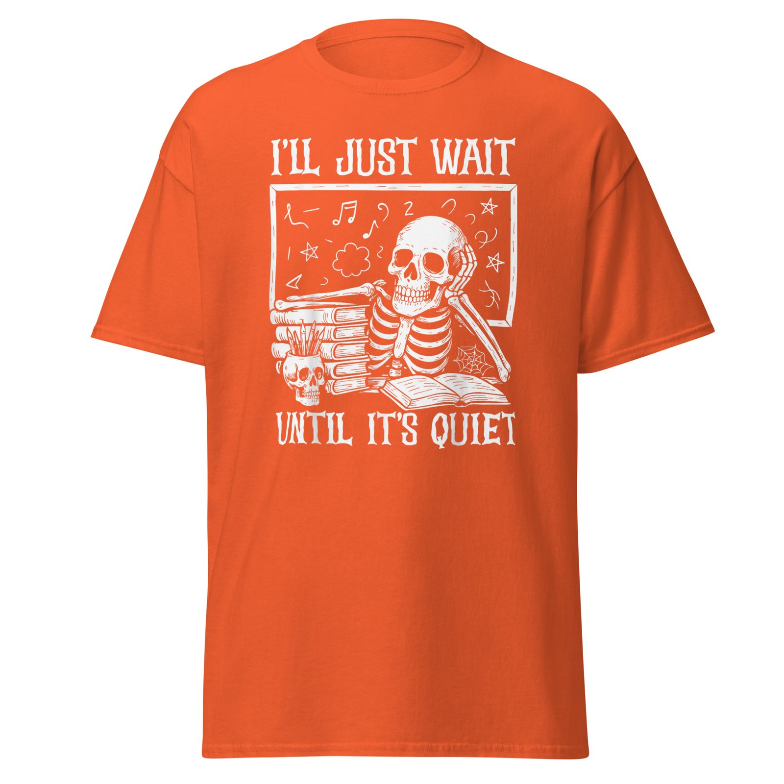 Embrace the spirit of Halloween with our fun and witty Teacher Halloween Shirt! Perfect for educators who appreciate a good laugh, this shirt features the phrase “I’ll Just Wait Until It’s Quiet,” making it an ideal choice for classroom celebrations or festive gatherings. Wear it during Halloween parties, school events, or casual outings. It’s a great gift for teachers who want to showcase their humor while celebrating the spooky season. Join in the fun and let your personality shine through this playful tee—it’s a perfect addition to your Halloween wardrobe!