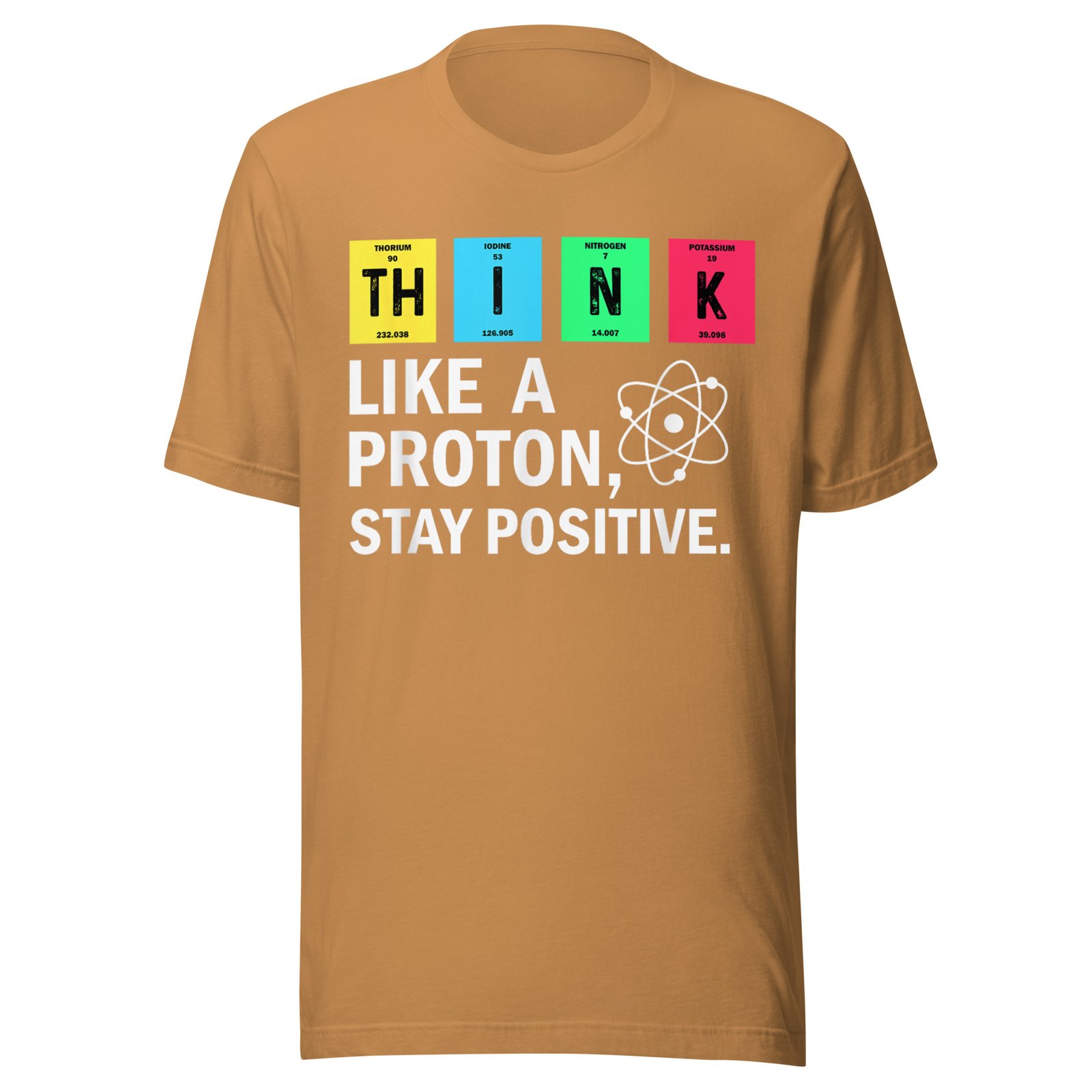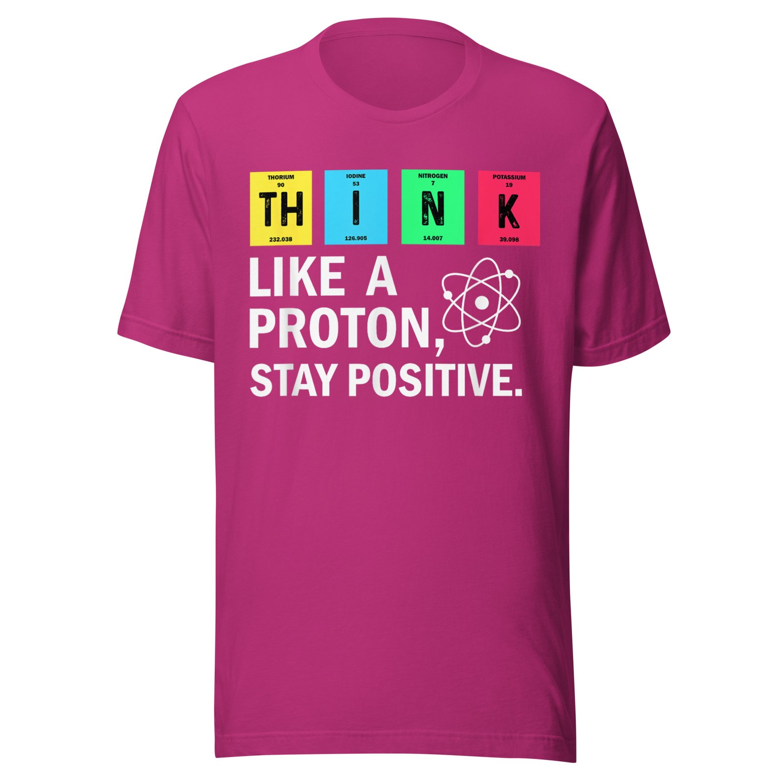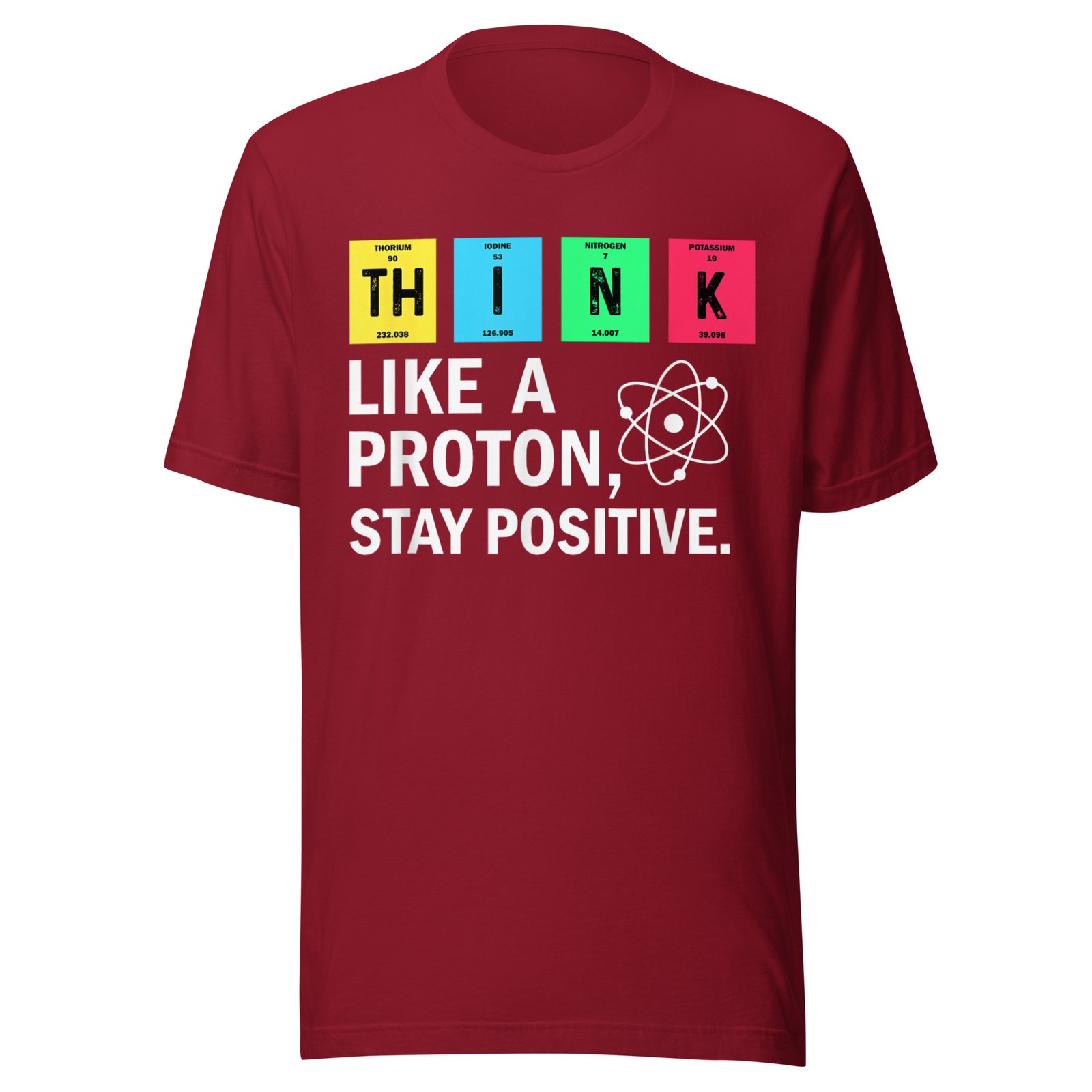Get ready to embrace your inner science lover with our “Think Like A Proton, Stay Positive” t-shirt! Perfect for science enthusiasts, students, or anyone with a great sense of humor. Wear it out at parties, school events, or casual gatherings to spread some positivity!
